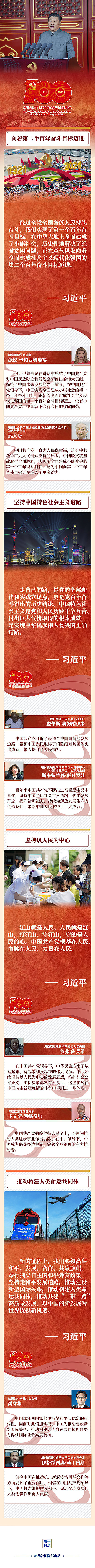 慶祝中國共產(chǎn)黨成立100周年大會7月1日在北京隆重舉行。中共中央總書記、國家主席、中央軍委主席習近平發(fā)表重要講話,回顧中國共產(chǎn)黨百年奮斗的光輝歷程,展望中華民族偉大復興的光明前景。