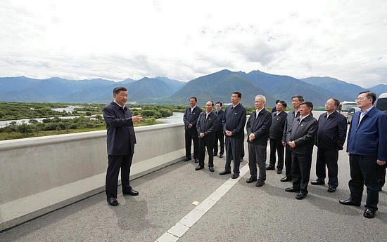 7月21日上午,習(xí)近平在林芝尼洋河大橋考察雅尼濕地。新華社記者 李學(xué)仁 攝