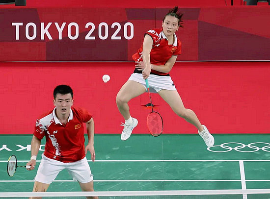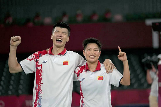 在東京奧運會羽毛球混合雙打決賽中,中國選手王懿律/黃東萍戰(zhàn)勝另一對中國選手鄭思維/黃雅瓊,獲得冠軍。