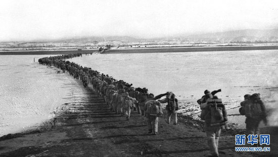 1950年10月19日,中國人民志愿軍雄赳赳、氣昂昂跨過鴨綠江,和朝鮮人民一道共同抗擊侵略者。新華社發(fā)(黎民 攝)