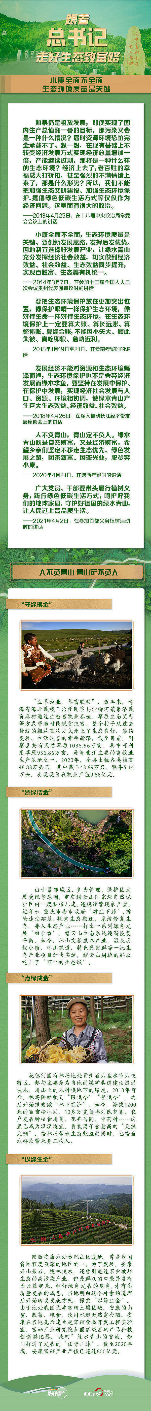 近年來,“綠水青山就是金山銀山”理念日益深入人心,既要“綠”又要“富”成為綠色發(fā)展的全面追求。時(shí)值“兩山”理念提出16周年之際,央視網(wǎng)《聯(lián)播+》特梳理總書記相關(guān)話語和地方踐行“綠水青山就是金山銀山”理念的生動(dòng)案例,與您一起堅(jiān)定信心,跟著總書記走好共創(chuàng)綠色美麗家園、共享美好小康生活的共富之路。