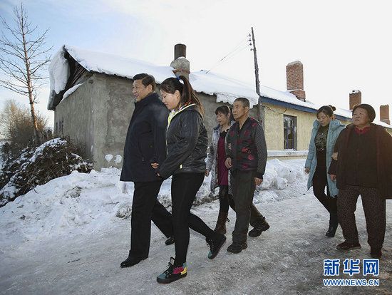 2014年1月26日,習(xí)近平總書記冒著零下30多攝氏度的嚴(yán)寒,來到內(nèi)蒙古興安盟阿爾山市伊爾施鎮(zhèn),看望慰問74歲的困難林業(yè)職工郭永財(cái)一家。新華社記者 蘭紅光 攝