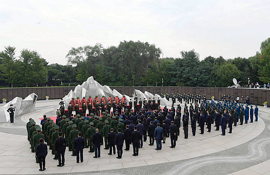 9月3日 第八批在韓中國(guó)人民志愿軍烈士遺骸安葬儀式在沈陽(yáng)舉行 新華社記者 楊青 攝