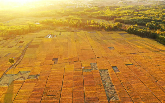 2020年10月18日在河北省灤州市古城街道蔣莊村拍攝的稻田(無人機照片)。新華社記者 牟宇 攝