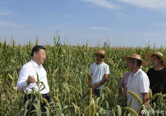 9月13日,習近平總書記在陜西省榆林市考察調(diào)研。他來到米脂縣銀州街道高西溝村,走進田間地頭,察看農(nóng)作物長勢,與陜北老鄉(xiāng)拉起家常,祝愿鄉(xiāng)親們的日子越過越紅火。