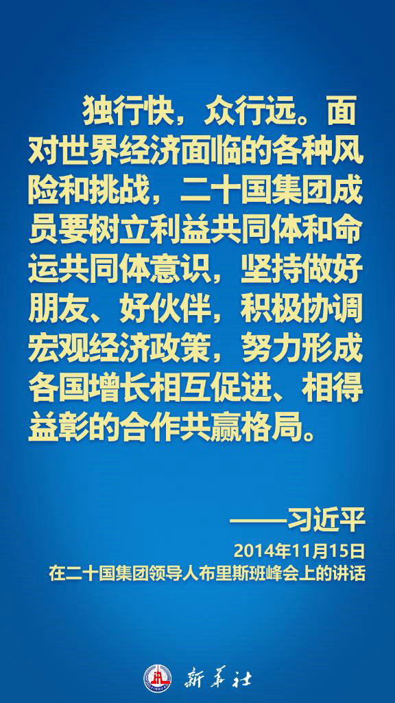 自2013年以來(lái),習(xí)近平主席出席歷次二十國(guó)集團(tuán)峰會(huì),為攜手促進(jìn)世界經(jīng)濟(jì)強(qiáng)勁、可持續(xù)、包容和平衡增長(zhǎng)提供中國(guó)方案,為完善全球經(jīng)濟(jì)治理貢獻(xiàn)中國(guó)智慧。