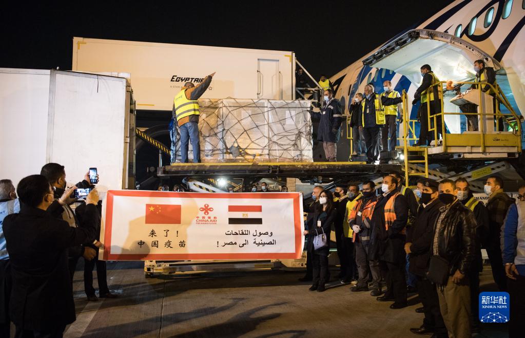 2021年2月23日,中國援助埃及的首批新冠疫苗抵達埃及開羅國際機場。新華社記者 鄔惠我 攝