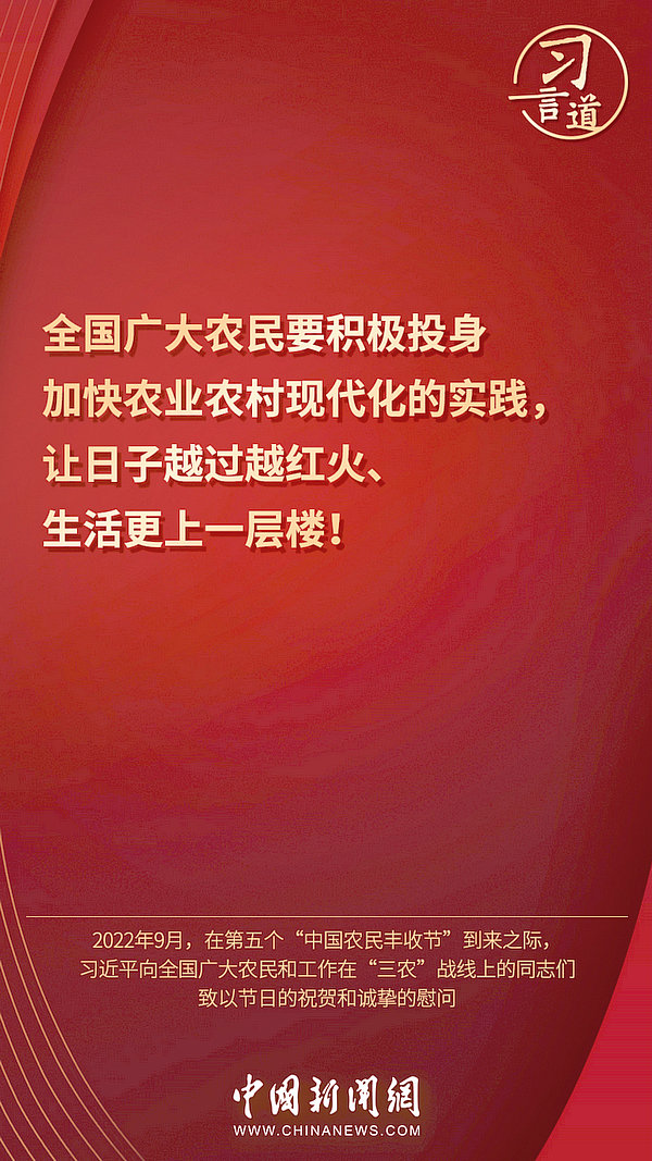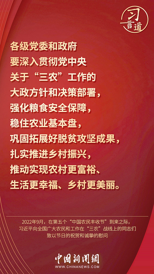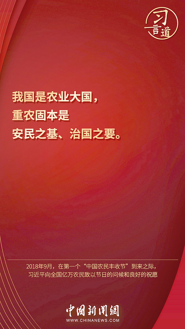 9月23日是秋分日,也是第五個(gè)“中國(guó)農(nóng)民豐收節(jié)”。今天,讓我們重溫習(xí)近平總書記對(duì)于“三農(nóng)”工作的重要論述——