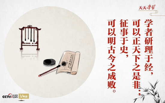 “學(xué)者研理于經(jīng),可以正天下之是非;征事于史,可以明古今之成敗”出自《四庫(kù)全書(shū)總目提要·子部總序》。正:同“證”,驗(yàn)證。征:征引。這句話意思是說(shuō),做學(xué)問(wèn)的人,研究儒家經(jīng)典中的道理,可以驗(yàn)證天下的是非;征引史籍中的事實(shí),可以明了古今的成敗。