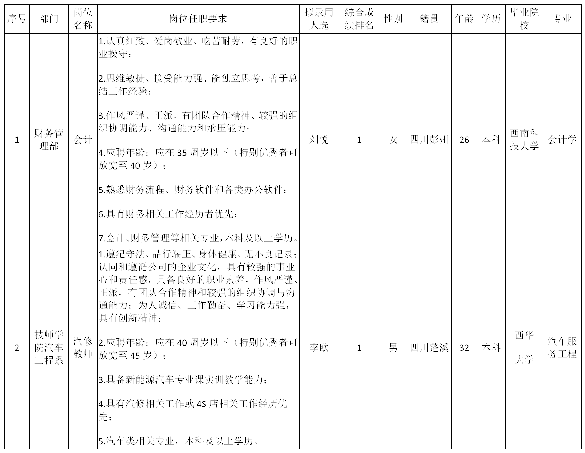 根據(jù)四川九洲教育投資管理有限公司發(fā)布的招聘公告及招聘相關規(guī)定,經(jīng)筆試、面試、考察、體檢等程序,擬錄用劉悅等同志到四川九洲教育投資管理有限公司工作,現(xiàn)予以公示,具體情況如下:
