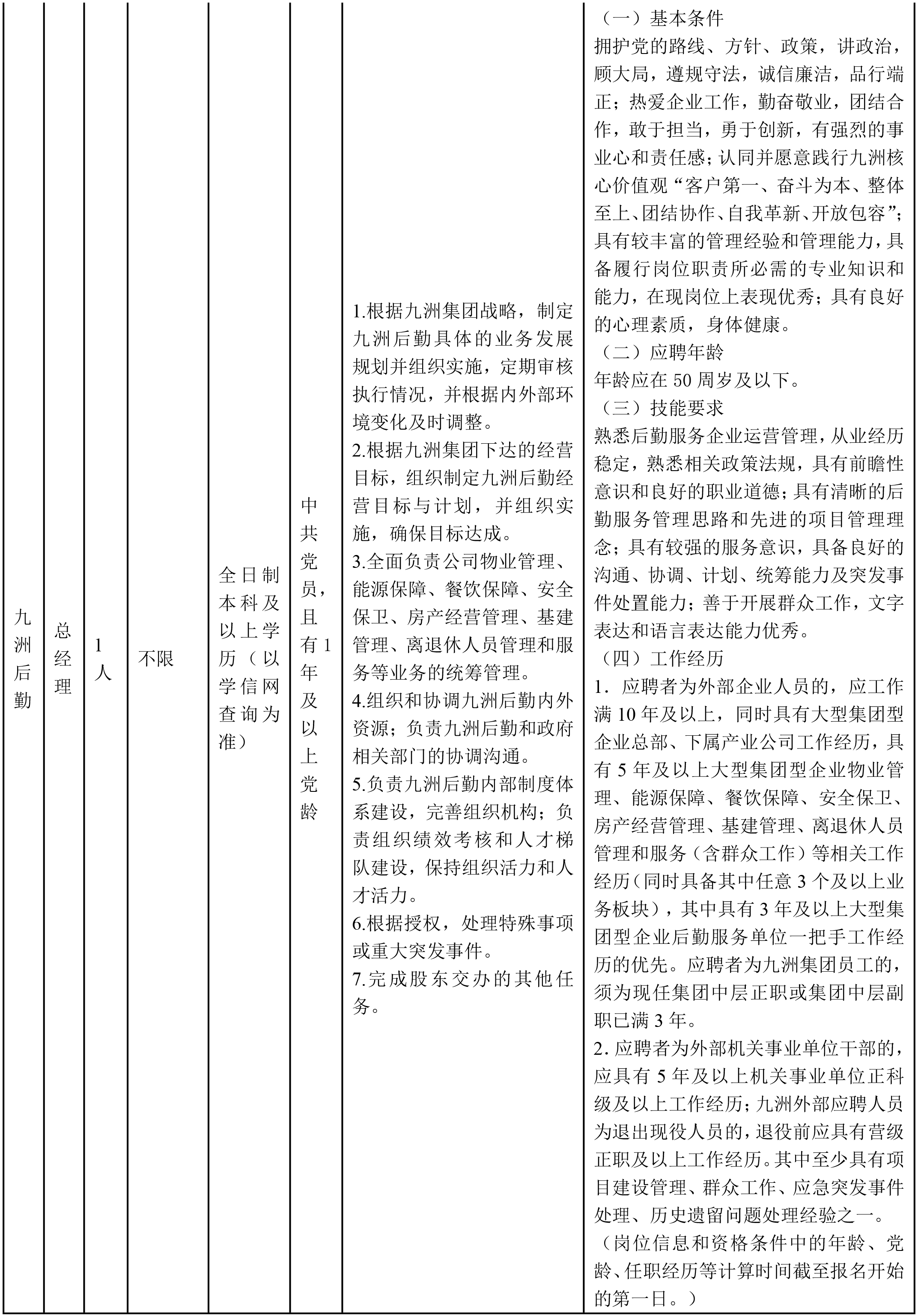 結合四川九洲投資控股集團有限公司法務審計部部長、四川九洲后勤服務有限責任公司總經理崗位前期報名情況和招聘工作實際,現將崗位報名截止時間延長至2024年6月20日,具體公告如下。