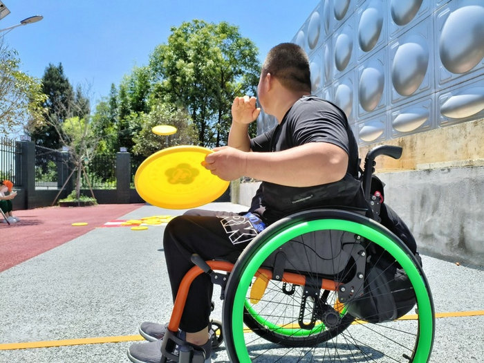 在比賽現(xiàn)場,選手們躍躍欲試,全神貫注地瞄準(zhǔn)飛盤,每一個動作都傳遞著他們對體育運動的熱愛與執(zhí)著。“我們殘疾人,包括我和身邊的殘疾人朋友,都不太愿意走出家門,現(xiàn)在有這樣的活動,我們可以結(jié)識新的朋友,也提升了自己。”選手羊少兵說。