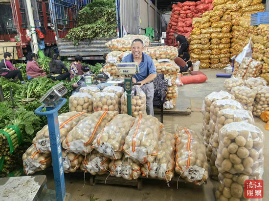 高水農(nóng)副產(chǎn)品批發(fā)市場商戶李老板正忙著收款,他告訴記者,為應(yīng)對雙節(jié)需求,1個(gè)月前便提前備貨,確保各類蔬菜新鮮且不脫銷斷供。“最近所有菜都比較好賣,銷售量和平時(shí)相比,提升了50%,采購商來我們這里采購的也比較多,銷售量比平時(shí)也有所增長。”李老板說。