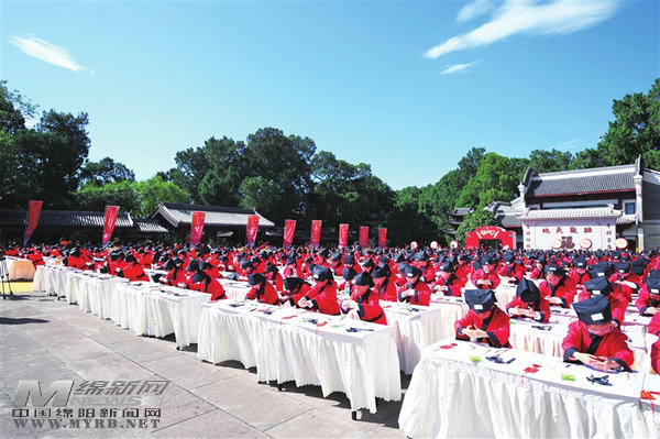 綿陽新聞網(wǎng)訊 10月13日,以“文昌星耀大蜀道·漢服啟智聚英才”為主題的“文昌開筆禮”千人開智大典在綿陽梓潼七曲山震撼上演。1200余名學子身著傳統(tǒng)漢服,共同挑戰(zhàn)“最大規(guī)模的啟智儀式”吉尼斯世界紀錄TM稱號,以莊重典雅的儀式為中華傳統(tǒng)文化寫下生動注腳。