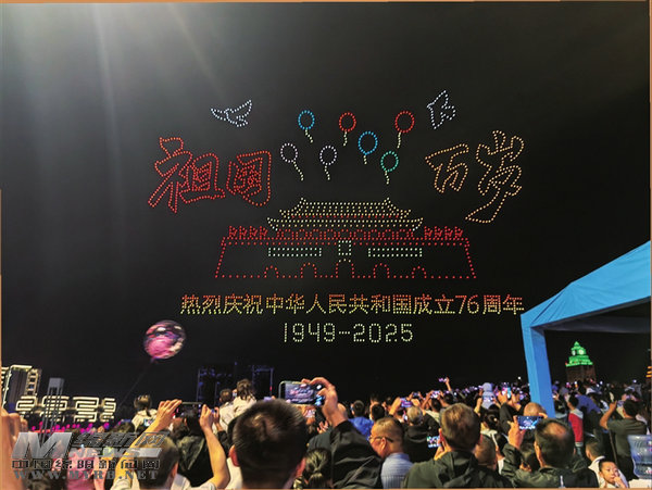 無人機(jī)+文藝匯演+美食市集,不僅讓在場群眾享受到了一場豐富的視覺盛宴,也將節(jié)日的氛圍感直接拉滿。“我們祖國越來越強(qiáng)大,這樣的慶祝活動太有意義了。”市民王女士感嘆,在國慶假期,帶著孩子看傳統(tǒng)文化與現(xiàn)代科技交融,是最好的愛國教育。