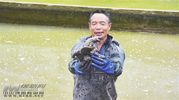 工人賴林興展示養(yǎng)殖的甲魚
