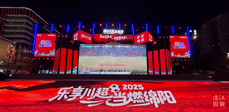 而在科技城新區(qū),新開業(yè)的上馬百盛購物中心則以“賽事直播+開業(yè)福利”的組合,成為市民觀賽消費的熱門之選。廣場中央的觀賽區(qū)座無虛席,熒光棒與“綿陽雄起”的加油標語交織成紅色的“海洋”。