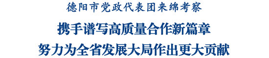 在綿期間,德陽市黨政代表團(tuán)前往中國(guó)(綿陽)科技城創(chuàng)新館、綿陽惠科光電科技有限公司、綿陽創(chuàng)明新能源有限公司、富臨精工股份有限公司等地參觀考察。