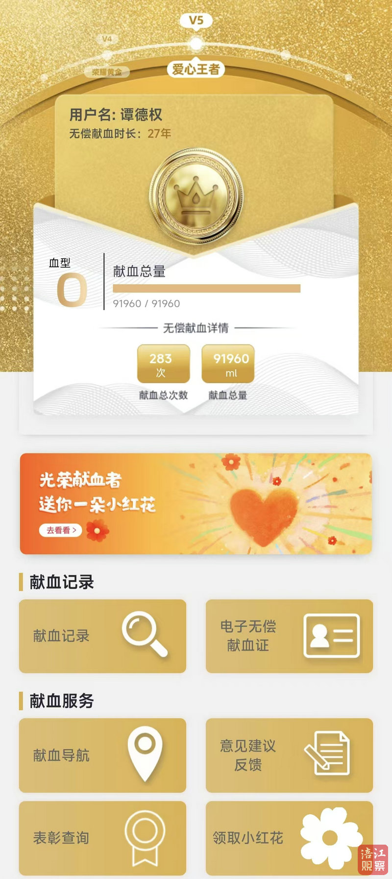 除了號召大家加入無償獻(xiàn)血隊伍,譚德權(quán)自己也堅持獻(xiàn)血了27年,獻(xiàn)血次數(shù)283次,累計獻(xiàn)血量達(dá)91960毫升,相當(dāng)于23名成人全身血量總和,為459位陌生人筑起了生命的防線。
