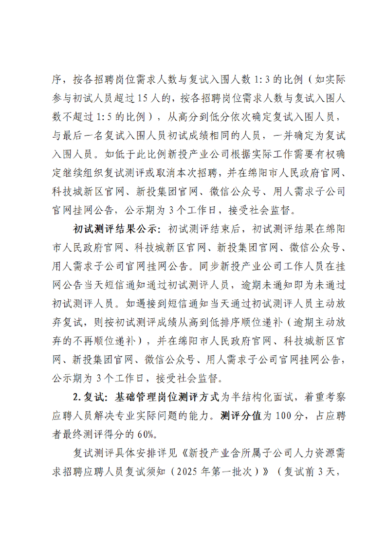 綿陽科技城新區(qū)新投產(chǎn)業(yè)發(fā)展有限責(zé)任公司關(guān)于外部公開招聘所屬子公司工作人員的公告(2025年第一批次)