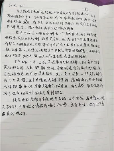 “今天依然很充實,教學(xué)氛圍也很舒服,下班以后也得準備好周四、周五的講課內(nèi)容,還要給他們看一些合適的動畫電影,感覺這樣的生活慢慢步入正軌了……”