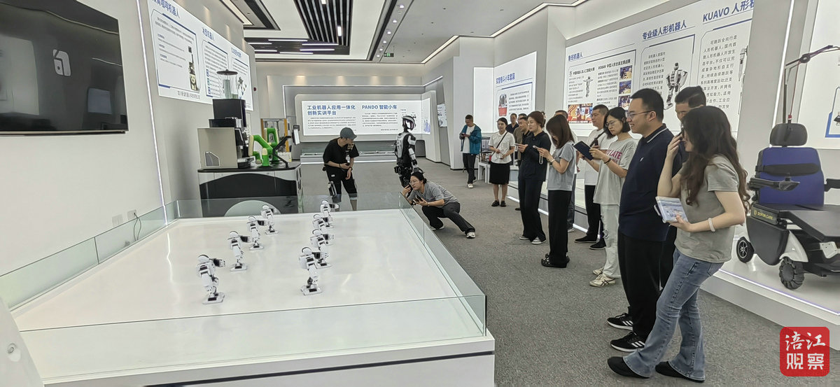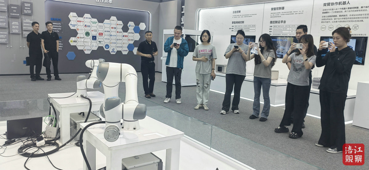 “會(huì)跳舞的機(jī)器人、可以帶你去逛展館的機(jī)器人……好像瞬間進(jìn)入了‘未來(lái)世界’。”25日,采訪團(tuán)一行來(lái)到綿陽(yáng)機(jī)器人制造產(chǎn)業(yè)園。這里是綿陽(yáng)推進(jìn)重點(diǎn)產(chǎn)業(yè)建圈強(qiáng)鏈“587”產(chǎn)業(yè)體系的核心陣地之一。當(dāng)看到形形色色的機(jī)器人活躍在不同“崗位”,或精準(zhǔn)裝配、或靈活搬運(yùn),媒體朋友們無(wú)不驚嘆于智能制造的魅力。