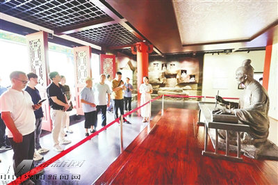 8月1日上午,采訪團(tuán)抵達(dá)江油“李白故里”。進(jìn)入景區(qū)仿若回到盛唐:太白樓巍峨,詩歌碑林刻千古絕唱,清風(fēng)似傳“安能摧眉折腰事權(quán)貴”吟誦。四大特色園區(qū)如畫卷,道盡李白生平與詩才。