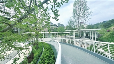 8月5日,記者在綿陽市城建攻堅項目科學城片區(qū)環(huán)境提升項目現(xiàn)場看到,正在實施的老龍山公園項目入口處的公園廣場及上山棧道已完工投用,成為附近居民健身休閑的好去處。