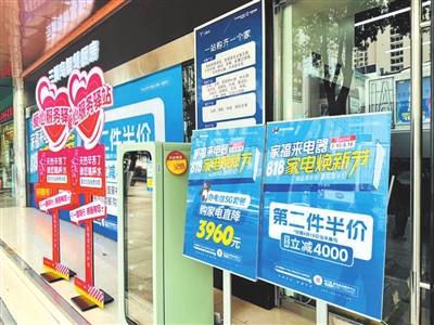 政策加力讓消費(fèi)者得實(shí)惠,更激活了家電消費(fèi)市場。記者在該店看到,門口擺放著“818家電煥新節(jié),單品享補(bǔ)貼,套購享半價(jià)”的宣傳海報(bào),店內(nèi)“購手機(jī)數(shù)碼家電享政府20%補(bǔ)貼”的海報(bào)同樣醒目。
