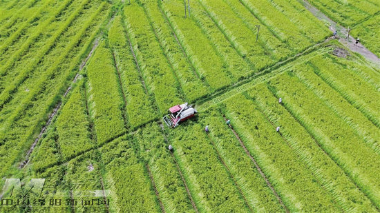 當(dāng)前,梓潼4萬(wàn)余畝水稻制種進(jìn)入成熟季。在黎雅鎮(zhèn)蘭花村,聯(lián)合收割機(jī)在田間來(lái)回作業(yè),一顆顆優(yōu)質(zhì)良種被裝入收割機(jī)中。 記者 劉曉東 攝