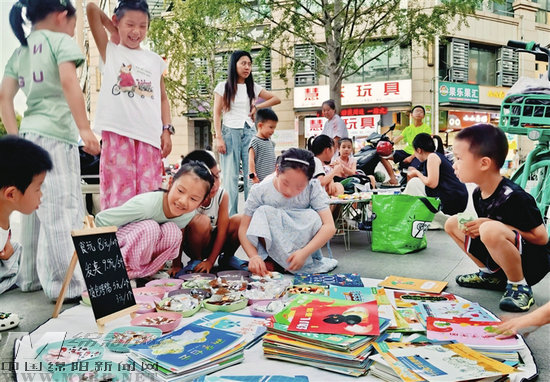 “小掌柜”萌萌的奶奶介紹,暑假期間看到有小朋友在小區(qū)廣場(chǎng)擺地?cái)?,便加入了進(jìn)來,“我們賣的多是自家書籍,價(jià)錢實(shí)惠,不買也能在現(xiàn)場(chǎng)一起看書,分享、傳遞這份快樂”。