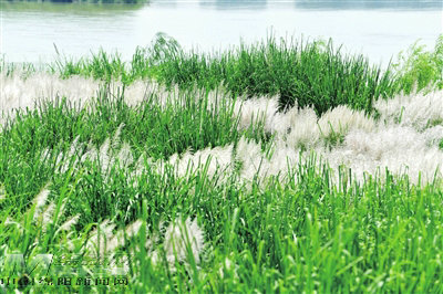 層層疊疊的蘆葦連綿成片,微風(fēng)拂過,一簇簇潔白的蘆花隨風(fēng)搖曳,涌起層層“雪浪”,勾勒出“蒹葭秋色”的江岸畫卷。