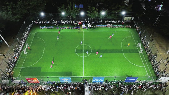 在動(dòng)感十足的DJ節(jié)奏中,象征足球競(jìng)技的第一聲哨響劃破夜空。一場(chǎng)緊張刺激的籠式足球表演賽隨即上演,觀眾席上驚呼連連,瞬間點(diǎn)燃了現(xiàn)場(chǎng)的熱情,這場(chǎng)“文體旅商”深度融合的盛宴就此拉開帷幕。