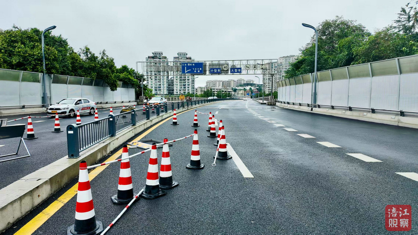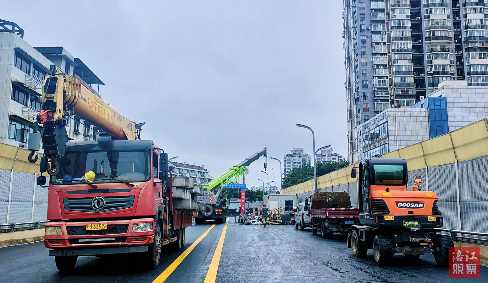 記者在現(xiàn)場(chǎng)看到,新三匯橋主體結(jié)構(gòu)巍然屹立,橋面寬敞平整,部分新的道路指示牌已清晰可見,交通標(biāo)線也在緊張施劃中。