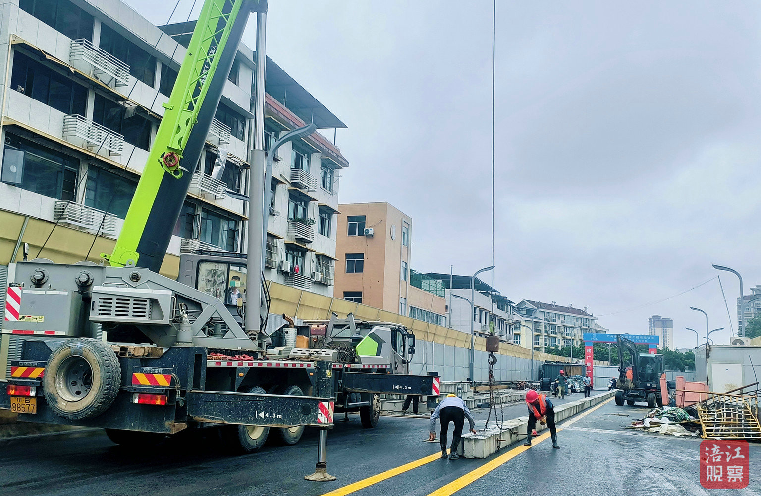 8月25日,在三匯立交橋施工現(xiàn)場(chǎng),機(jī)器轟鳴聲漸歇,取而代之的是工人忙碌的身影。