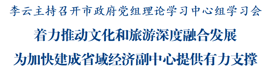 綿陽新聞網(wǎng)訊 8月26日,市政府黨組召開理論學(xué)習(xí)中心組學(xué)習(xí)會,集中學(xué)習(xí)習(xí)近平總書記關(guān)于文化和旅游工作的重要論述,學(xué)習(xí)省委十二屆七次全會和市委八屆十次全會精神。市委副書記、市政府黨組書記、市長李云主持會議并講話,強調(diào)要深入學(xué)習(xí)貫徹習(xí)近平總書記對四川工作系列重要指示精神,認(rèn)真落實省委、市委全會各項部署要求,著力推動文化和旅游深度融合發(fā)展,不斷提升綿陽文化影響力、旅游吸引力、產(chǎn)業(yè)競爭力,為加快建成省域經(jīng)濟副中心提供有力支撐。