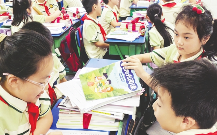 在成綿路小學(xué),濃郁的開(kāi)學(xué)氛圍撲面而來(lái)。教室被精心布置一新,嶄新的課本上系著喜慶的大紅花,仿佛在向每一位踏入教室的孩子傳遞新學(xué)期的美好期許;課桌上,新紅領(lǐng)巾擺放得整整齊齊。拿到新書(shū)的孩子們難掩興奮,迫不及待地與同學(xué)圍坐在一起翻閱,熱烈討論著即將學(xué)習(xí)的內(nèi)容,稚嫩的臉龐上滿是對(duì)知識(shí)的渴望與對(duì)未來(lái)的憧憬。