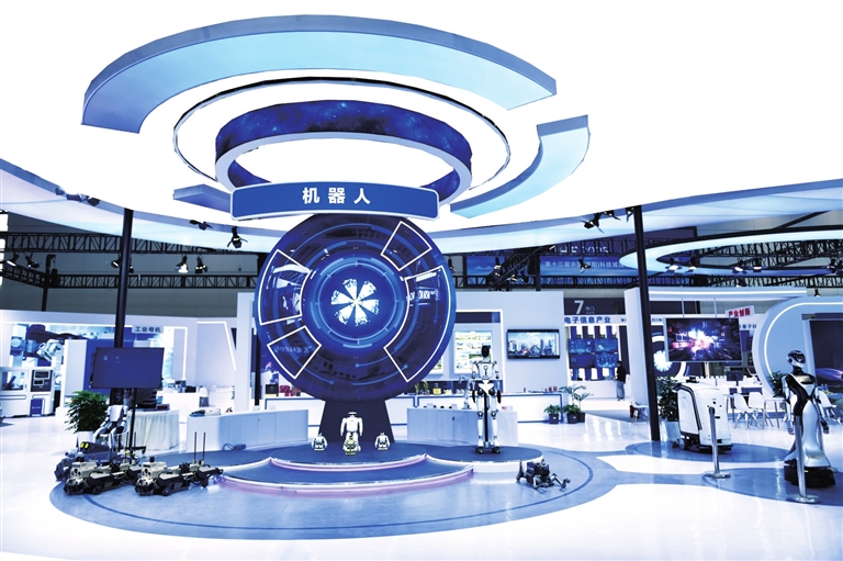 9月26日,綿陽再次進入“科博時間”,在綿陽國際會展中心A館——科技創(chuàng)新成果主題館,機器人展區(qū)內(nèi),機器狗、人形機器人等各類機器人“站”在一起,令人矚目。(記者 劉曉東 攝)