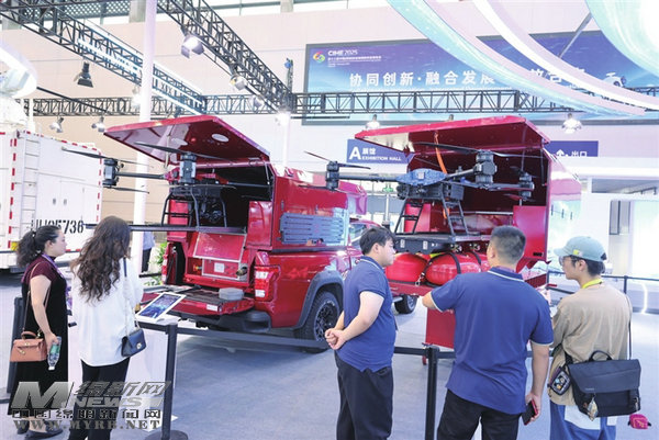 在科博會A館,一款由皮卡車裝載的高層快反滅火無人機(jī)系統(tǒng)吸引了眾多目光。 [